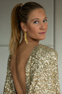 This is a pair that will go with any party outfit! The earring consists of all matt gold rods, which are flexible. The earring therefore has a nice playful look.