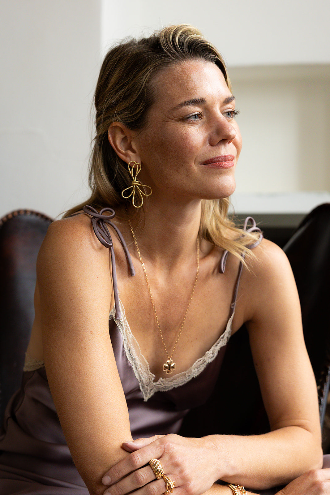 Een charm die symbool staat voor geluk en positieve energie. De Fleur Charm heeft de vorm van een klavertje vier met een verfijnde bolletjesrand en een glanzende, 18-karaats vergulde afwerking. Draag haar solo aan een ketting of combineer met andere charms voor een persoonlijke touch.