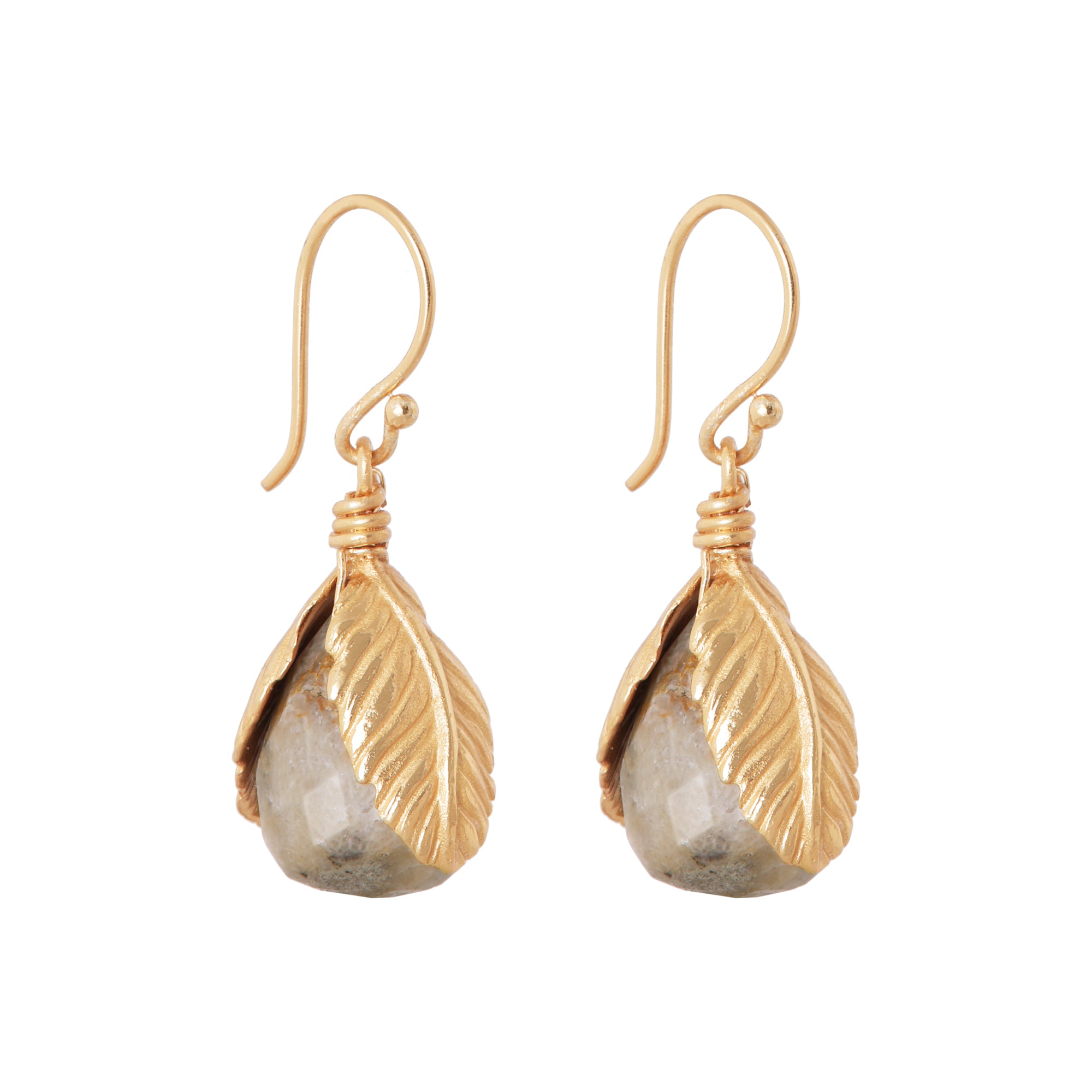 Een ode aan de natuur. De steen, met haar zachte tint en facetten, wordt omlijst door een verguld blad dat zich als een sieraad om haar heen vouwt. Tijdloos, vrouwelijk en moeiteloos chic.