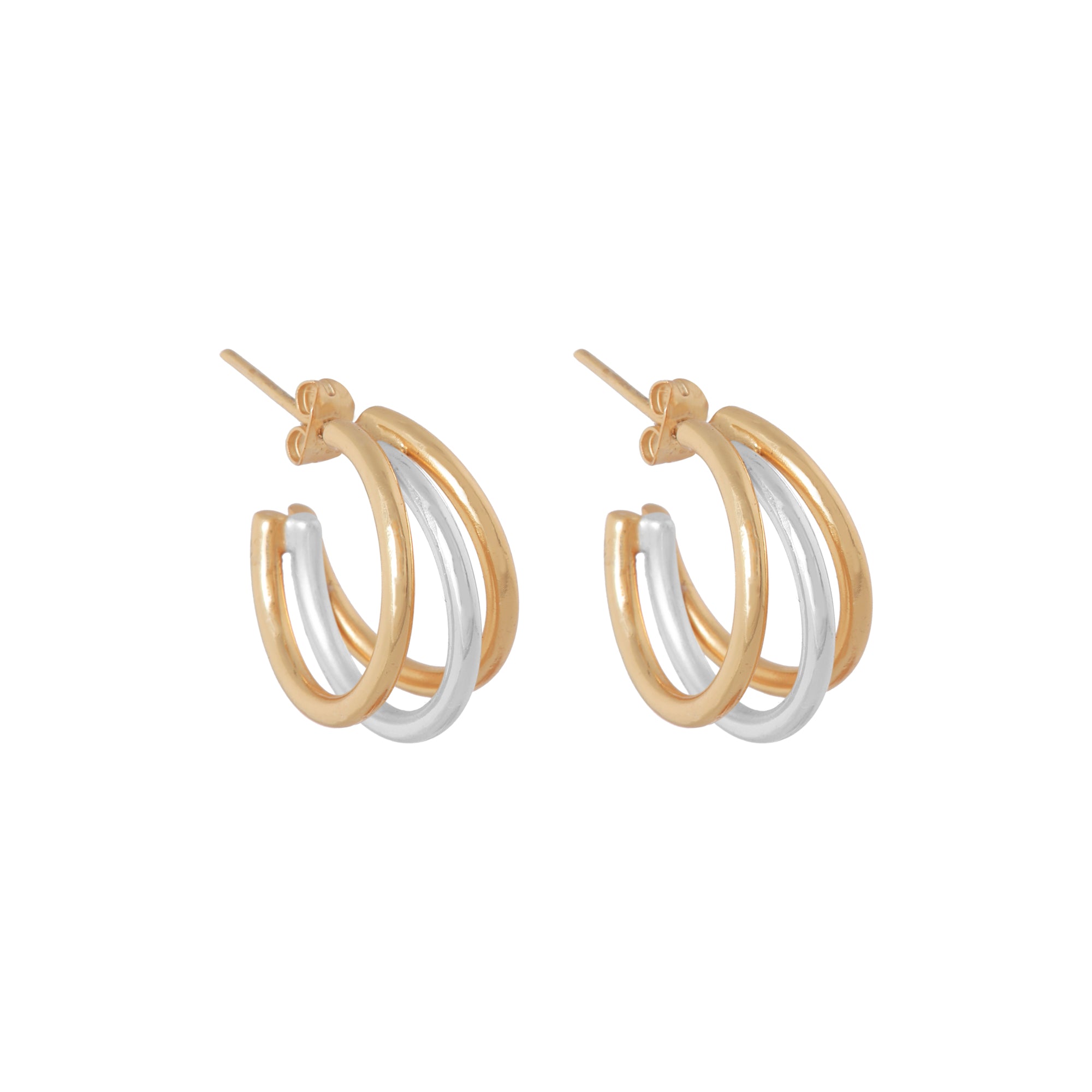 De Lune Bicolour brengt balans tussen zilver en goud — een moderne interpretatie van de klassieke creool. Drie glanzende banden vloeien in elkaar over en vangen het licht vanuit elke hoek.