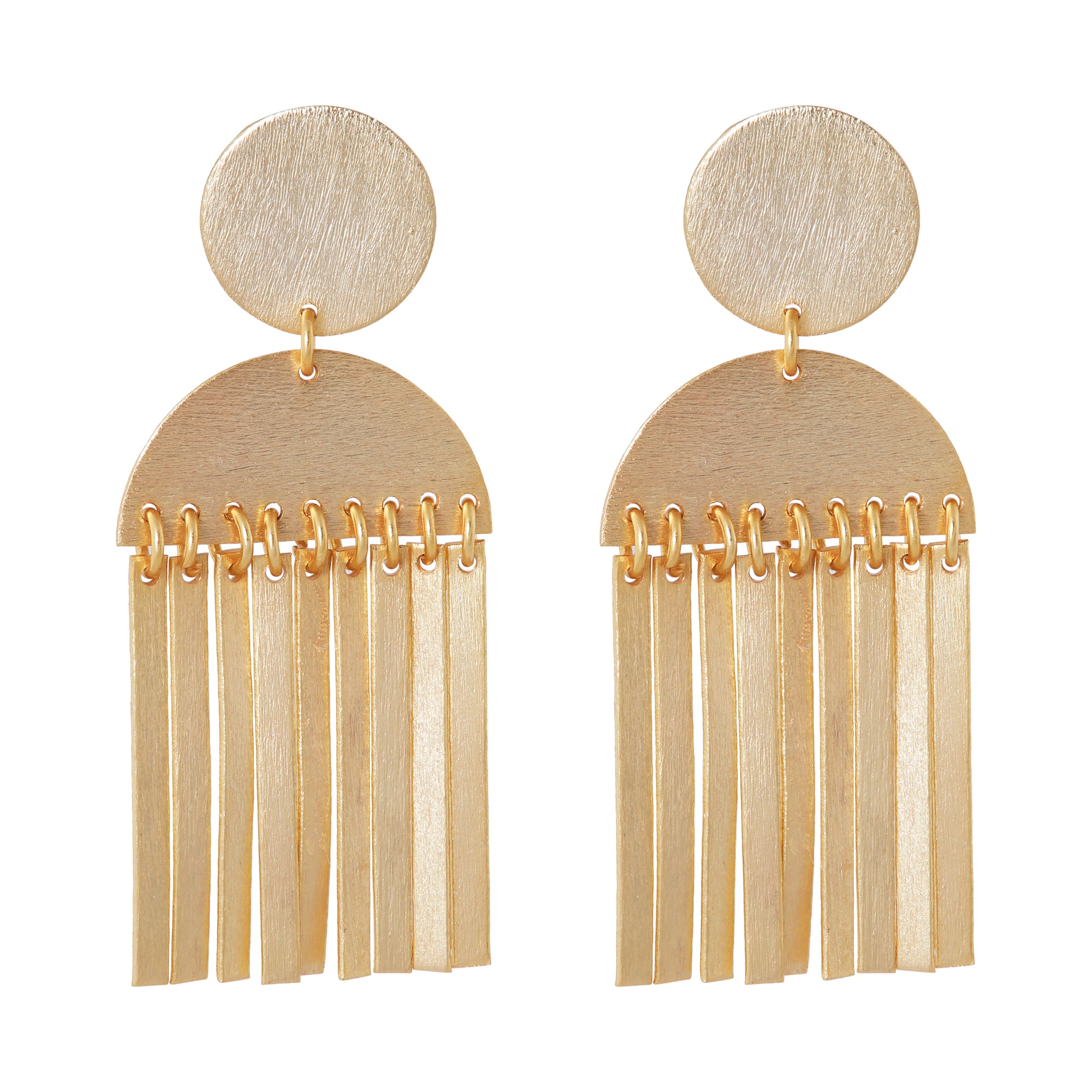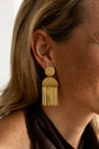 Sierra ademt de sfeer van modern western met een elegante twist. De ronde vormen vloeien over in strakke, gouden franjes die bij elke beweging levendig meespelen. Stoer en vrouwelijk tegelijk — een 18-karaats verguld statement piece dat je look meteen karakter geeft.