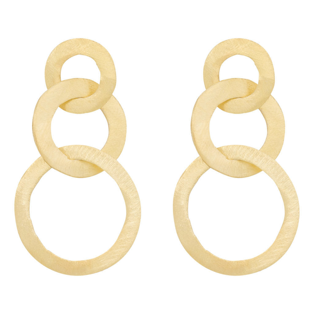 Een prachtige mat geslagen vergulde oorbel bestaande uit drie verschillende ringen in elkaar gedraaid!