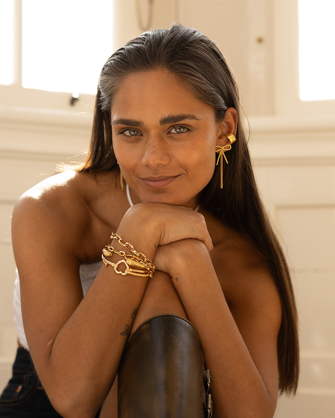 Onze handgemaakte oorbellen van 18-karaats verguld goud brengen luxe en speelsheid samen, voor vrouwen die durven op te vallen zonder in te leveren op stijl.